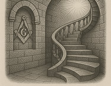 Colocó el pie en el primer peldaño, y el eco de su paso vibró en la inmensidad del tiempo. Tres escalones le recordaron que la Sabiduría, la Fuerza y la Belleza sostienen toda gran obra. Cinco más le susurraron que los sentidos son las puertas del conocimiento. Los Siete finales le revelaron las artes liberales, llaves ocultas que descifran el lenguaje del universo.